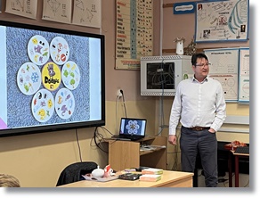 Ma, érdeklődő felsős diákjaink megismerhették Ruff János pécsi kutató-matematikust, aki amellett, hogy az egyetemen oktat és foglalkozásokat tart kiemelkedő tehetségű kis matekosoknak, játékokat is fejleszt.