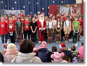 Harmadik osztályos kisdiákjaink remek előadásukban arra keresték a választ: „Miért késik a Mikulás?”. A kedves, zenés, táncos jelenetből hamar megkaptuk a választ, és szerencsére a valóságban nem is késett a Mikulás. Jött időben, tele puttonnyal. Mindenki kapott ajándékot: hasznosat és praktikusat, finomat és egészségeset is.
